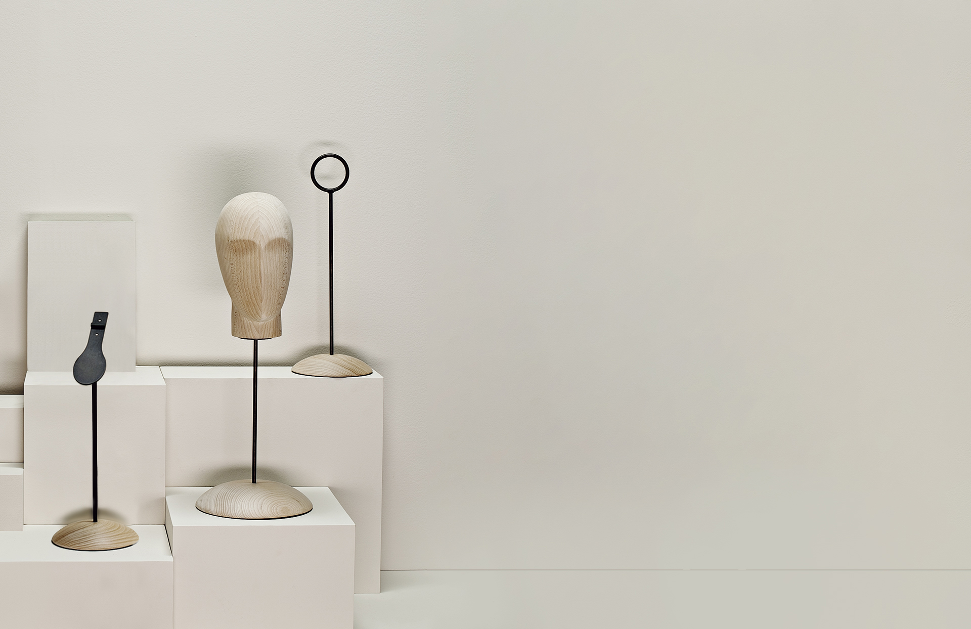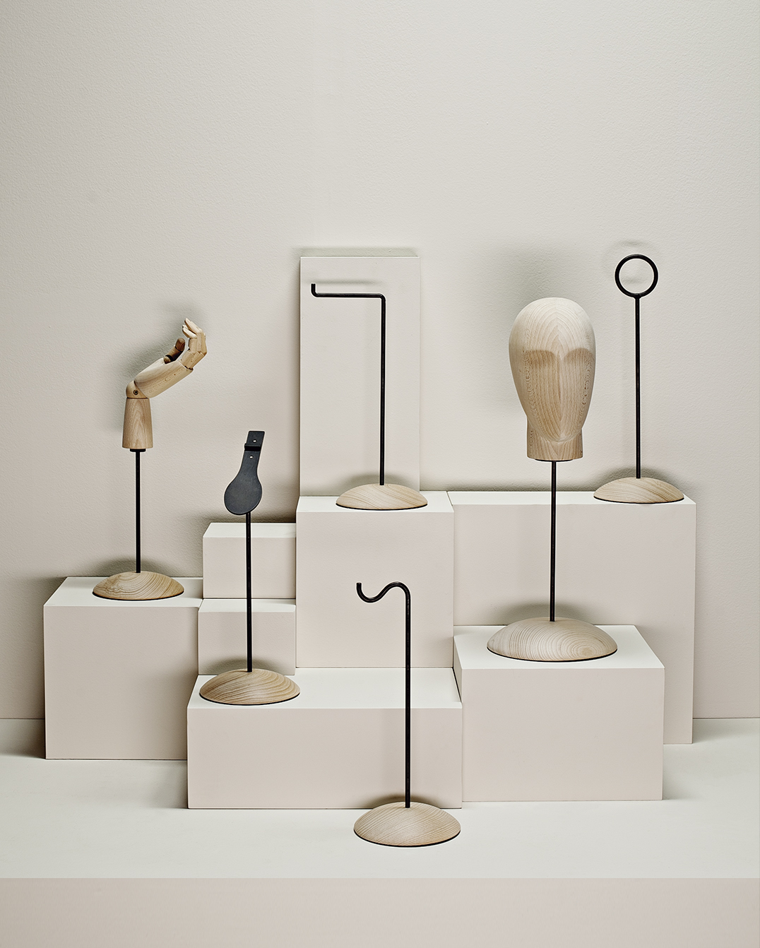 La colección habita los espacios de moda con silenciosa confianza, ofreciendo un soporte que realza la composición en lugar de dominarla. Su sencillez responde a los principios del visual merchandising, donde la proporción y la textura dictan el tono de la presentación.