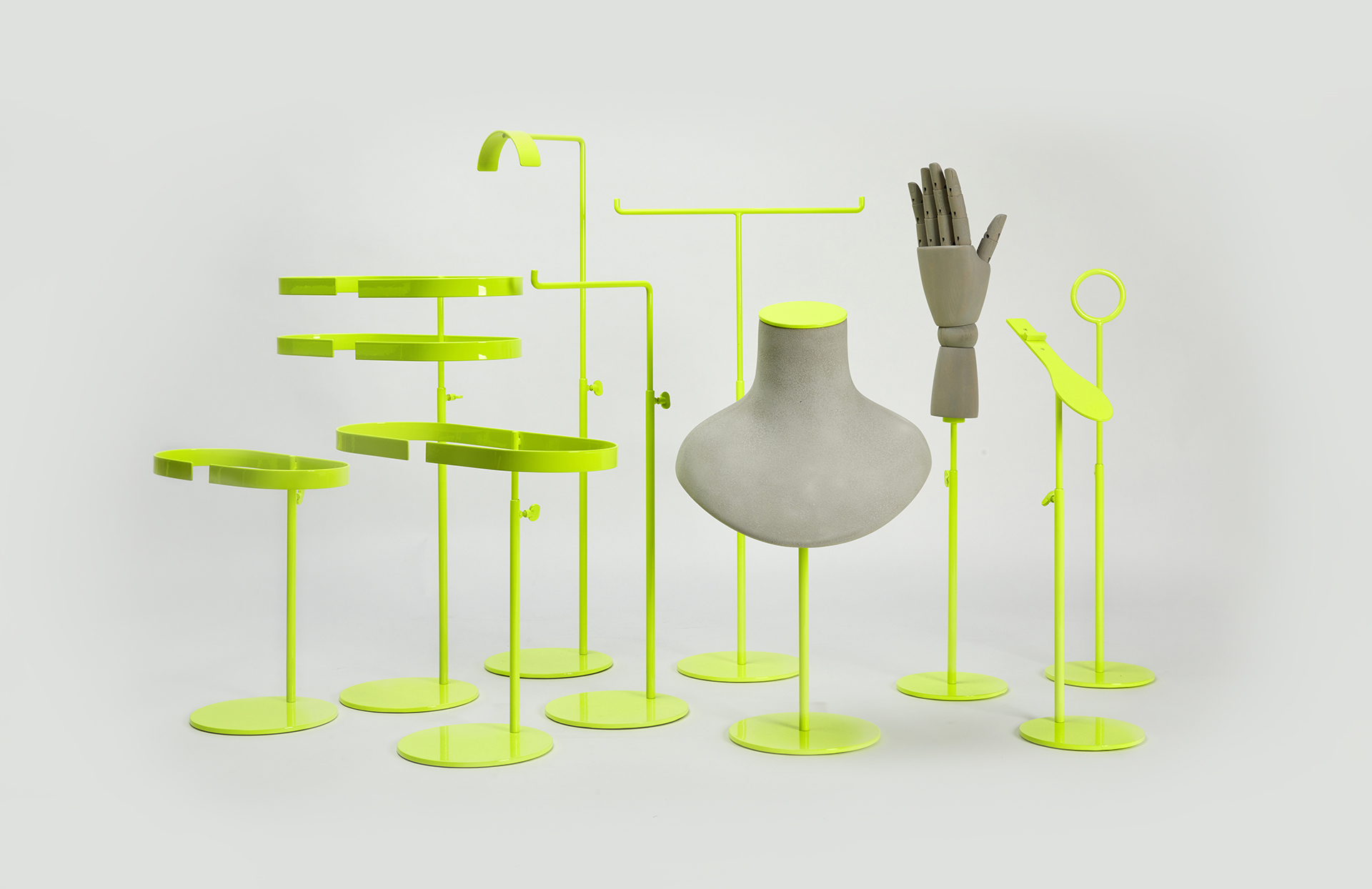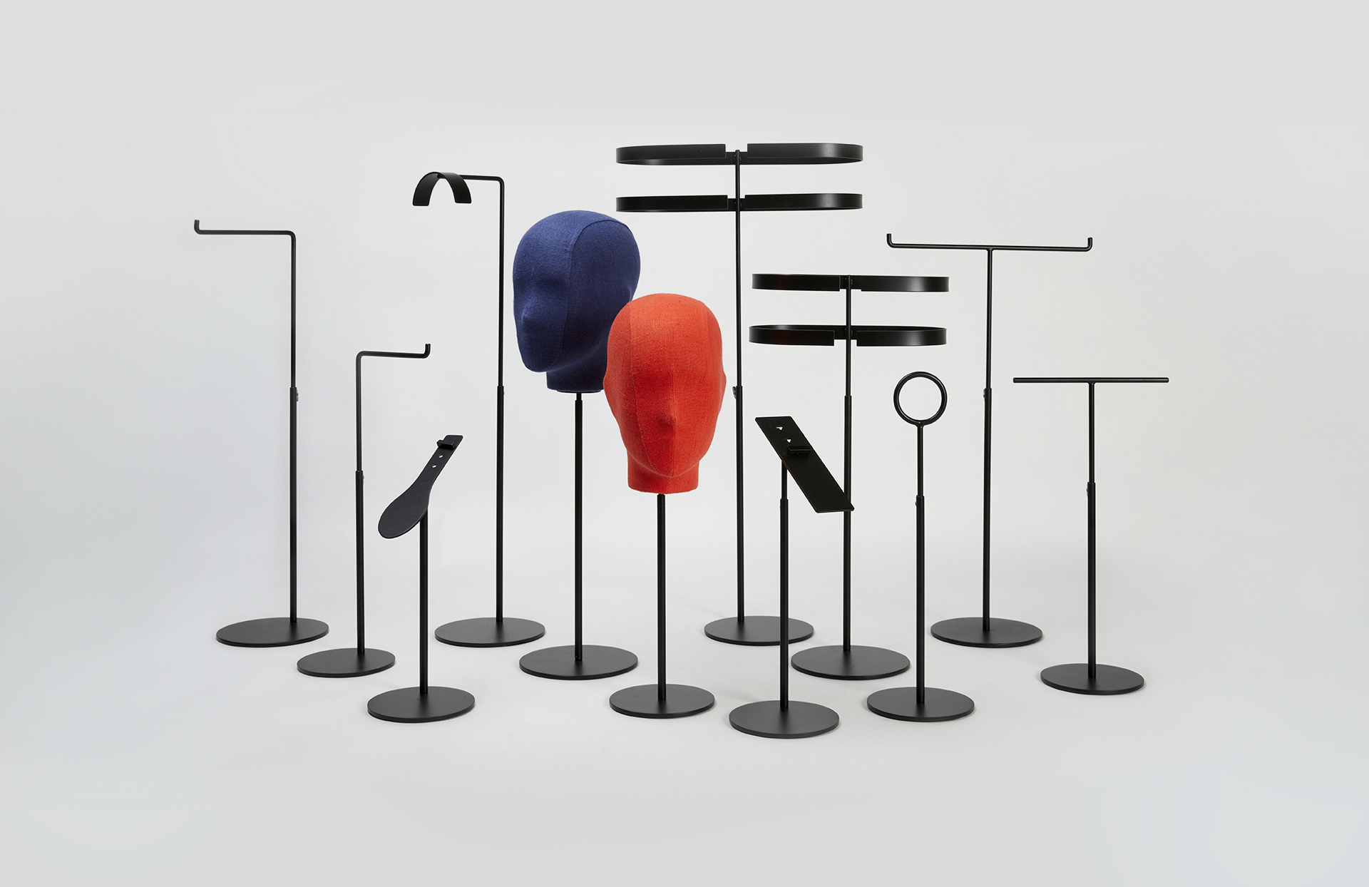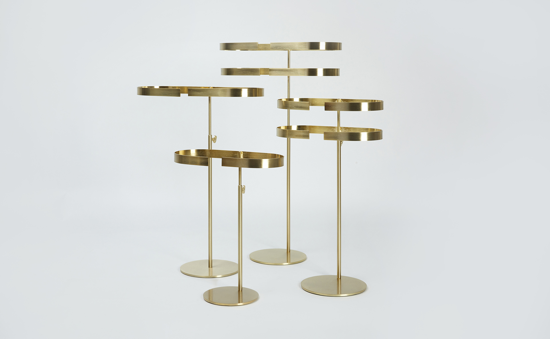 NARBONA es una topografía de podios y soportes pensados para construir paisajes expositivos acogedores. Sus bases escalonadas y radios generosos envuelven el producto con calidez mediterránea.